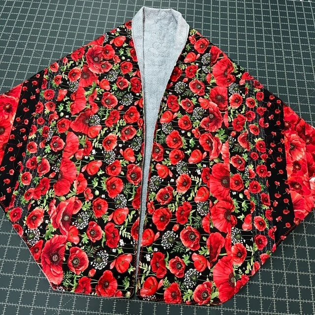 Make it “yours” and add pockets inside or outside and be creative with your Closure. Consdier using flannel for the lining and skip the batting and bulk. Many choices for your Hug are suitable, i.e., a quilt, a panel of fabric, pre-cut fabrics and fabric yardage.